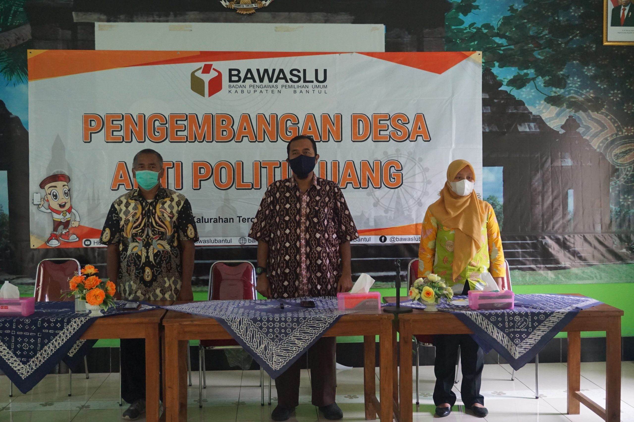 Minggu, 27 Maret 2022 Bawaslu Kabupaten Bantul melakukan Sosialisasi Pengembangan Desa Anti Politik Uang (APU) di Kantor Kalurahan Terong Kecamatan Dlingo. Kegiatan tersebut diselenggarakan di Kalurahan Terong Kecamatan Dlingo, Bawaslu Kabupaten Bantul menggandeng Desa setempat untuk dapat berpartisipasi dalam program Desa APU. Pada masa non tahapan ini Bawaslu Kabupaten Bantul berupaya untuk meningkatkan partisipasi masyarakat dan mendorong desa-desa agar dapat membetuk tim relawan anti politik uang, sehingga kedepan proses tahapan Pemilu/Pemilihan dapat atau justru akan menghilangkan budaya pragmatis transaksional terkait dengan politik uang.