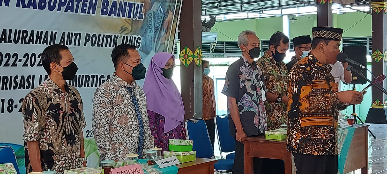 Bawaslu Kabupaten Bantul Hadiri Pelantikan Tim Penggerak Kalurahan Anti Politik Uang (APU) Murtigading