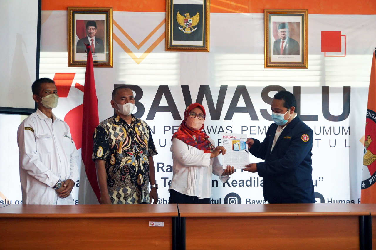 Moment bagus dengan bertemunya para pengurus Karang Taruna Kabupaten Bantul ini juga digunakan Bawaslu Kabupaten Bantul untuk sosialisasi dan memberikan bulletin edisi 1 dan edisi 2 yang diterbitkan oleh Bawaslu Kabupaten Bantul dengan tema Profil Bawaslu dan Berintegritas dalam Demokrasi.
