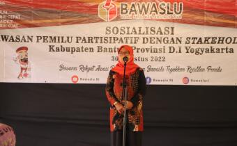 Bantul - Selasa 30 Agustus 2022 Bawaslu menyelenggarakan sosialisasi pengawasan partisipatif yang di gelar dalam rangka meningkatkan partisipasi masyarkat dalam persiapan pengawasan penyelenggaraan Pemilihan Umum Serentak Tahun 2024 terutama dari peran perempuan dan penyandang disabilitas.