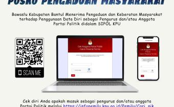 Bawaslu Kabupaten Bantul telah membuka Posko Pengaduan Masyarakat dalam rangka melaksanakan tugas pengawasan pada Tahapan Pendaftaran, Verifikasi dan Penetapan Partai Politik Peserta Pemilu Tahun 2024 dan sebagai bentuk tindaklanjut Instruksi Bawaslu RI Nomor 3 Tahun 2022 tentang Pendirian Posko