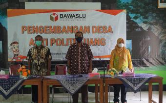 Minggu, 27 Maret 2022 Bawaslu Kabupaten Bantul melakukan Sosialisasi Pengembangan Desa Anti Politik Uang (APU) di Kantor Kalurahan Terong Kecamatan Dlingo.